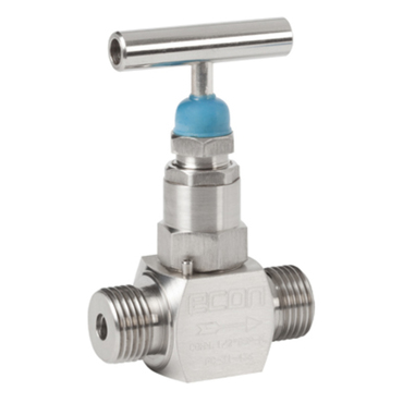 Válvula de aguja ECON 229, fabricada en Acero Inoxidable, construcción recta, conexión Rosca Externa. Presión nominal PN400 , rango de temperaturas -10/+180°C. Medidas 1/4″ a 1″.